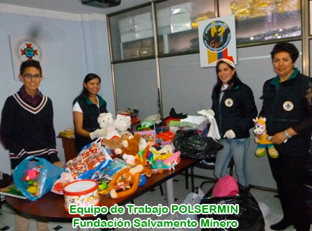 En los últimos años, con recursos de la organización POLSERMIN, hemos logrado llevar una voz de aliento a las familias (padres, viudas y huérfanos) de los mineros fallecidos, así como los discapacitados en desarrollo de la actividad minera, con la intención de mitigar el dolor y la ausencia causadas por la desaparición de quienes fueron el soporte económico de estas familias que quedan desprotegidas, entregando en diferentes municipios mineros: Mercados, kits escolares, ropa, calzado y juguetes.