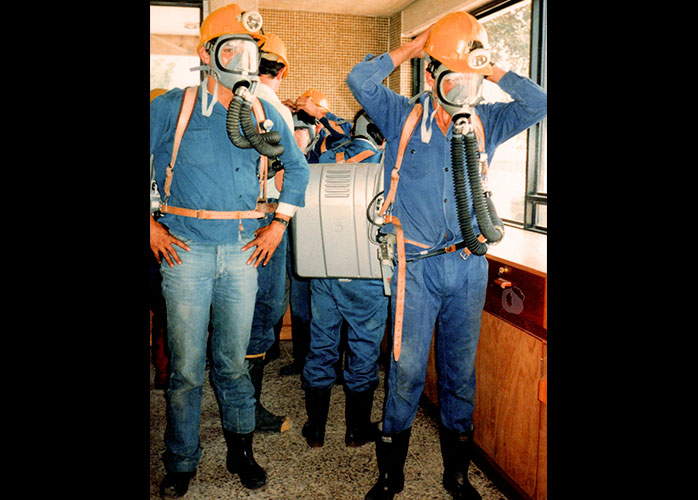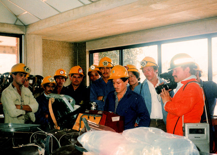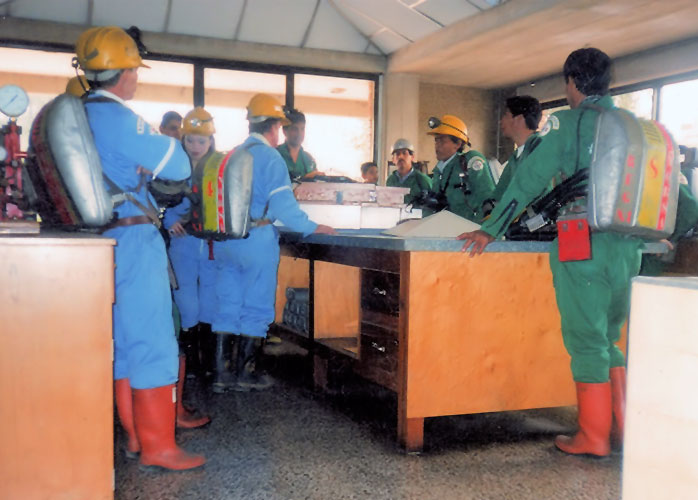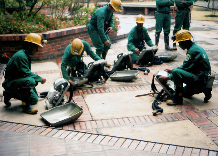 Primera Formación en Salvamento Minero SENA-PROCARBON Zipaquira, Mina el Triunfo, Equipos de Respiración Auto-Contenidos 1er Equipo de Circuito Cerrado W-70 FASER de Polonia en Colombia.